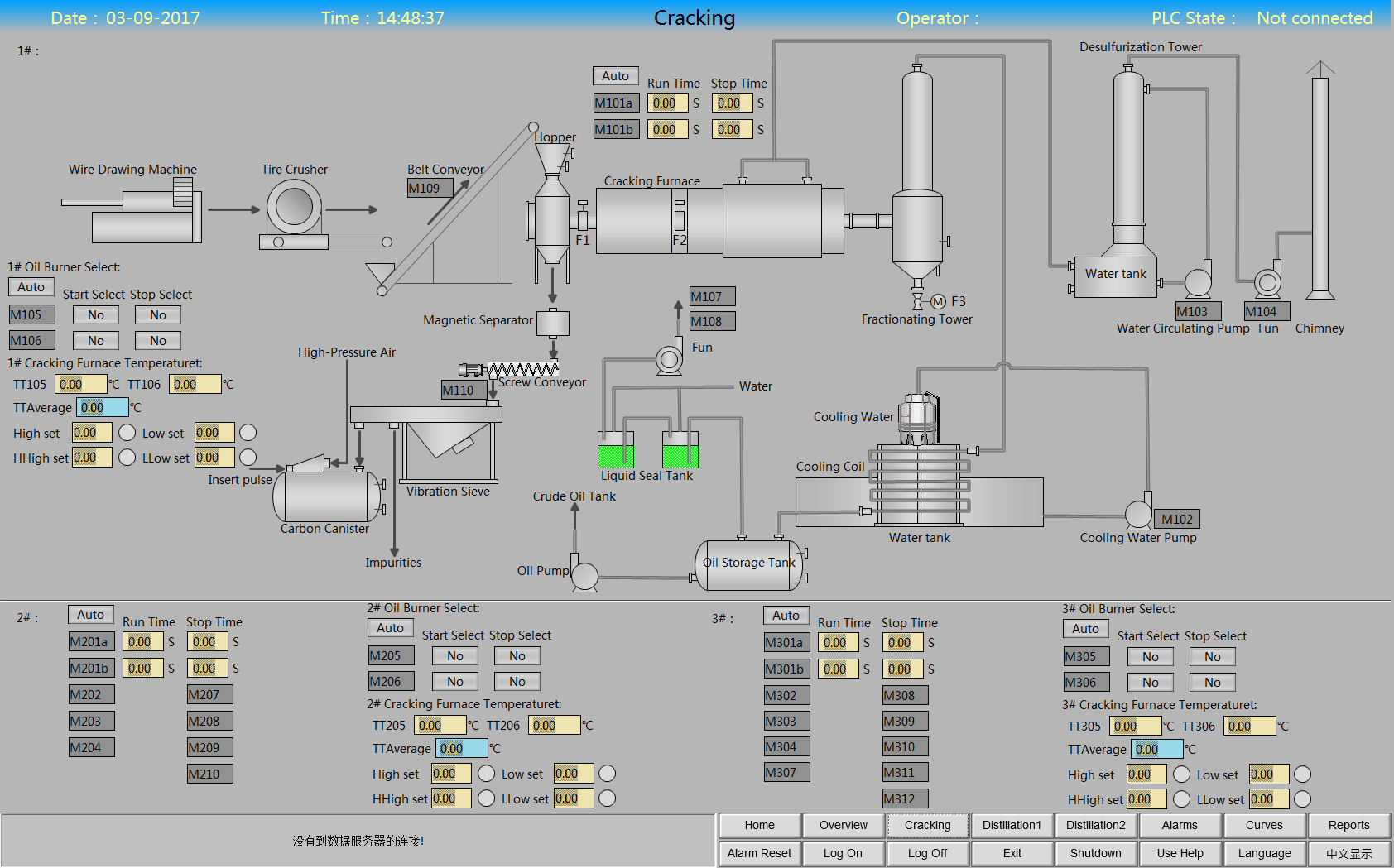 再生塑料、廢舊輪胎制油工藝(破碎、裂解、精餾)生產(chǎn)線電氣自動(dòng)化控制系統(tǒng);