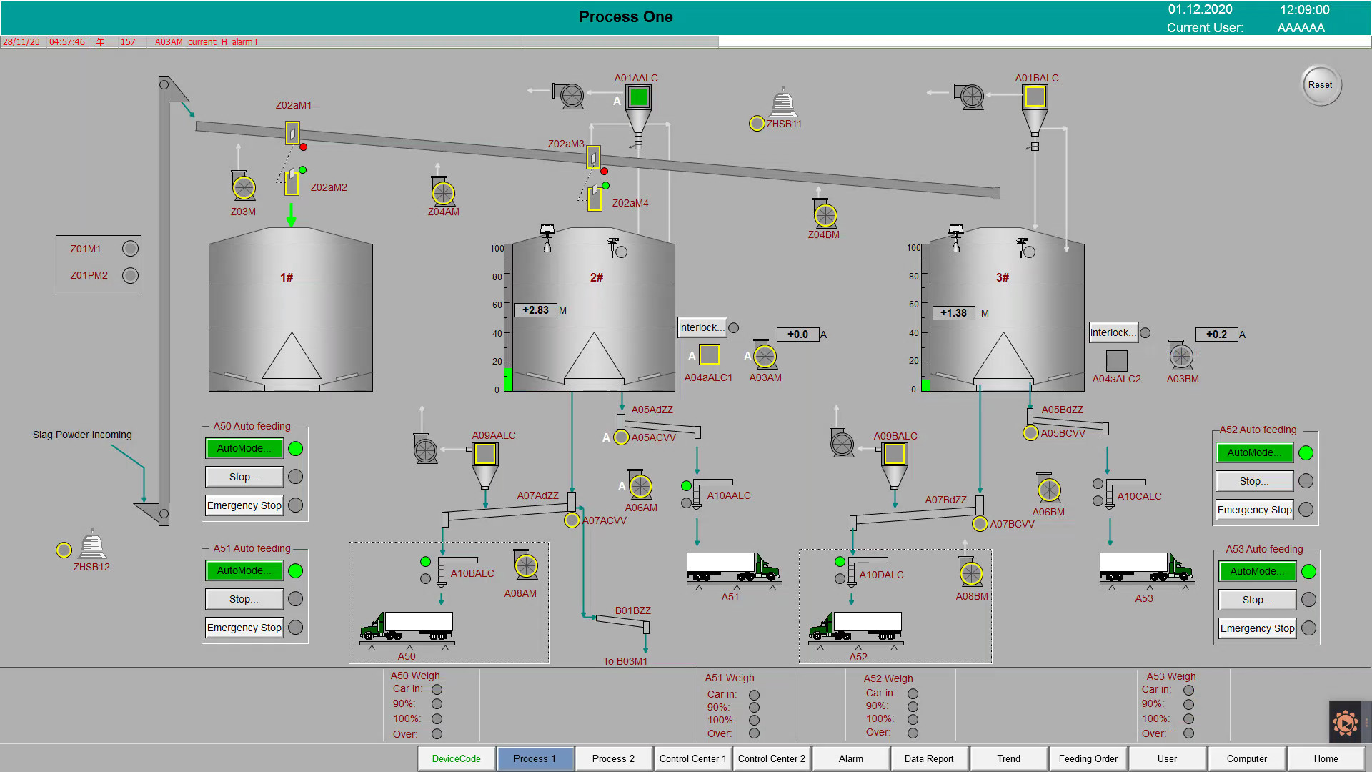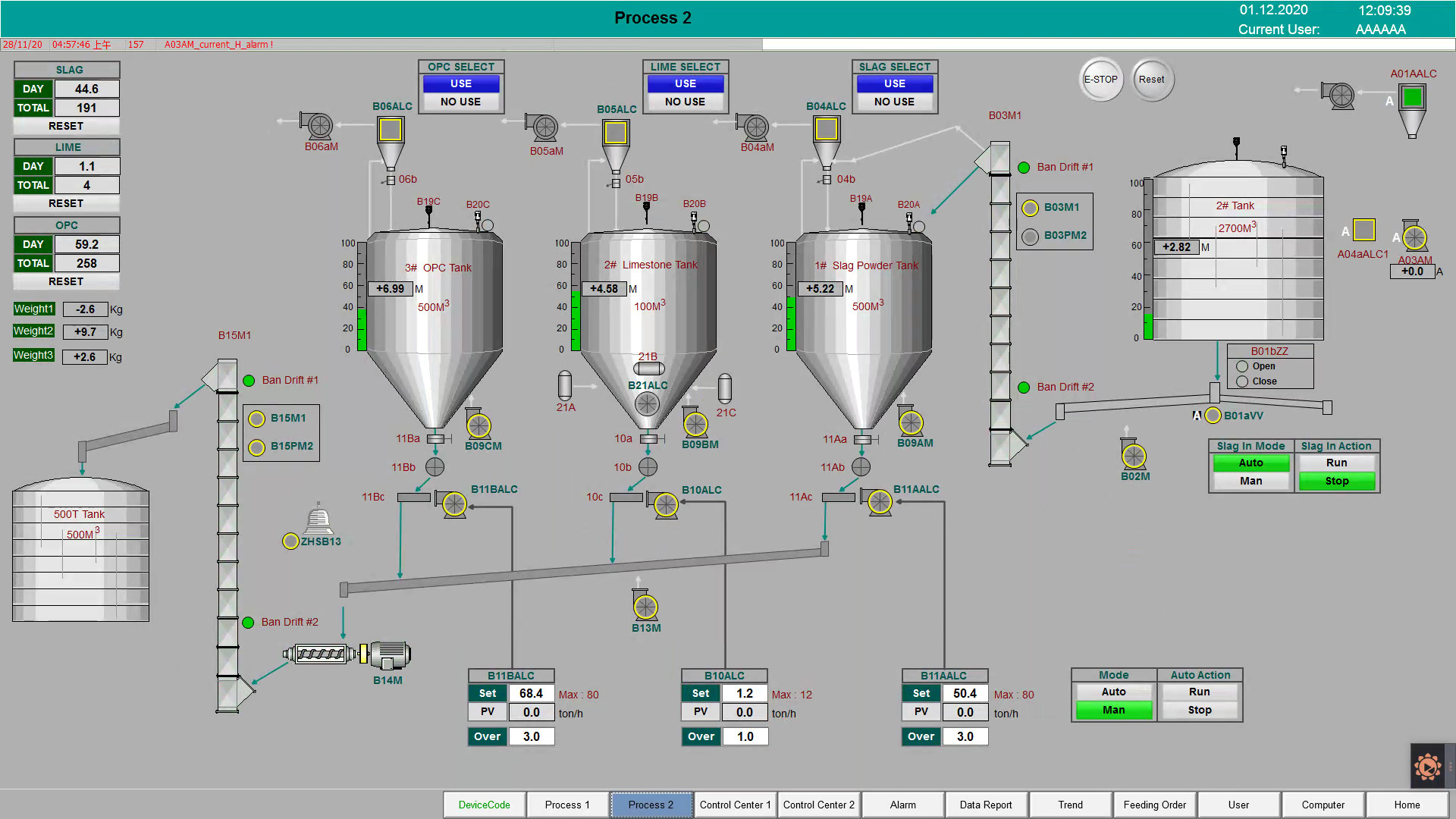 大型水泥倉(cāng)、鋼板倉(cāng)、糧倉(cāng)等入料、出料輸送控制系統(tǒng);